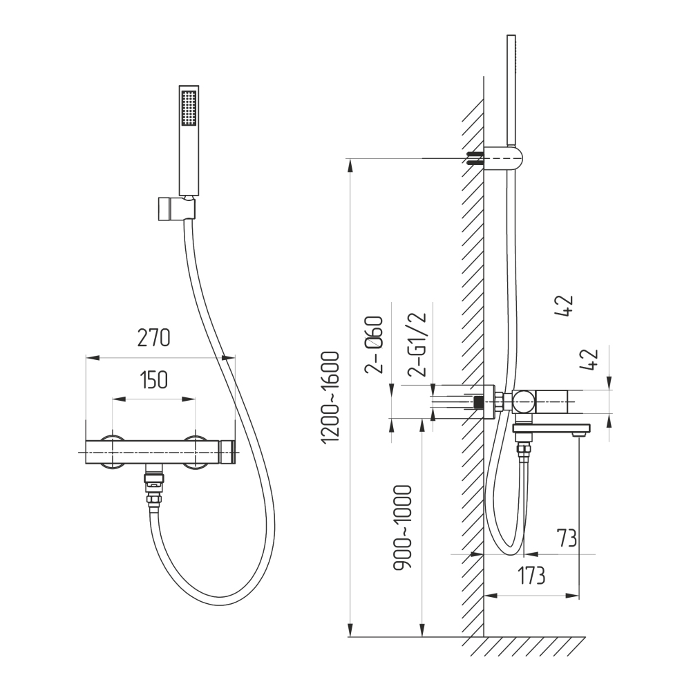 смеситель; эксцентрики; душевой шланг; ручнй душ; настенный держатель; инструкция.