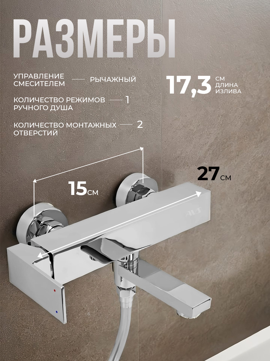 Смеситель для ванны с душем AVS Cube хром
